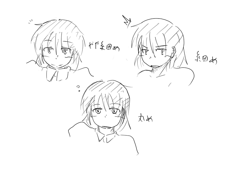 とつぜんですがー、 貴方はどの「目」がお好きですか? よろしければ、お答え頂けると幸いです。 字が読みにくかったらごめんなさいw てなわけで。 画風を安定させてしまおうか、幾つかバリエーションを持っておこうか、考え中でス。 安定させようにも、どの辺が人気があるのだろうか、と。 主に瞳の大きさと、輪郭の丸みが変わるだけで… 顔に合わせて体格変えるとか、そういう高度なアレソレはちょっとまだ難しいのですが。それはまた追々。 最近気付いたんだが、私はジト目が大好きらしいです。今まで無自覚。 もし宜しければ、御意見頂ければ有難いな、と。 そんなわけで、上のを今しがたチャチャッと描いてきました。 記事描き始めてから、思い立ったように絵を描き始める。何と段取りの悪い男よ。 関係ないけど、未だに下書きがないと、デジタルは上手く描けませんー。線は歪むし、バランス崩すし。トホホ。 とはいえ、描き直しが容易だし、今回みたいにてけとーに描くなら便利ですね。下書きあれば塗りも綺麗にイケるし。 デジタルって便利~。 って、そんな話だったか…? | プロフィール