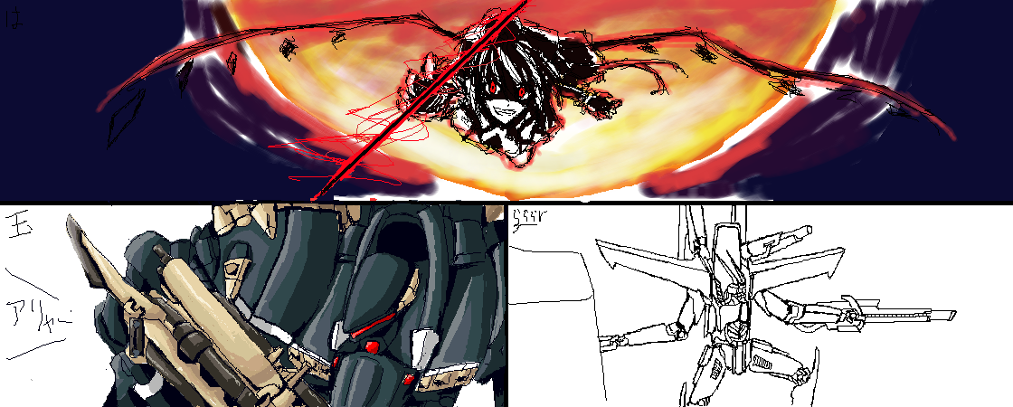 試験が近いから、簡潔にいくぜ!!がコンセプト。ひゃほーい。 今回はお題無し。フリーダム。 上 はくろう。さん いつもながらというか、流石のはくろう。さんである。 これ、エチャログ記事の定型文ですw というわけで、毎度のことカリスマのはくろう。さんのフランちゃん。 背景が美しすぎです。200%増しです(何が) やっぱ濃い影はいいなぁ、カッコイイよなぁ。黒ベタは格好良さの象徴ですね。 右下 らららrさん おもむろに素晴らしいロボ絵を描き出して下さった方。 全国のロボオタに代わってお礼を言いたい、ありがとう。 オリジナルのデザインだそうです。んー、ええのうええのう。 ナイトメアとかに近いかんじ? あとポージングにACのOPを感じたのは私だけではないはず。 片背にだけ構えられたキャノンにこだわりを感じざるを得ません。 分かってるなぁw デザインを見るだけで、メカ愛が伝わってきます~。絶対ロボよりメカ派だよこの方は!!同志!! 左下 私 で、右に便乗して私もメカを描いたらこのザマさ。 4系のヴィジュアル担当、アリャーマン。 エクハザの方がカッコイイけどね。まあ、今回は譲ってやるさw デザインうろ憶えだったんで、所々アレンジです。 マーヴとか憶えてねえー。よく使うけどさ。 それにしても、コイツはいつも以上に時間がかかりました。御迷惑おかけしました;; さてさて、明日は物理の試験で御在。 勉学で悩むのは学生らしいですが、正直お断りですよね?w | プロフィール